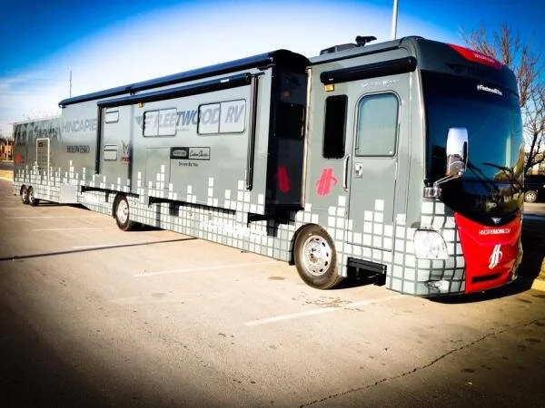 Viens no lielākajiem pasākuma atbalstītājiem bija “Fleetwood RV” un tādēļ, ka viņi ir ļoti iesaistījušies riteņbraukšanā un ir vieni no lielākajiem mūsu komandas sponsoriem, “Fleetwood RV” bija ieradušies ar trīs milzīgiem kemperiem un paņēma mūs savā paspārnē. Kopā ar mūsu kara kuģi mums bija četras milzīgas mājas, mazākajā dzīvoju kopā ar Džoiju. Vienā no milžiem pat bija kamīns. Jā, nopietni. Kamīns.